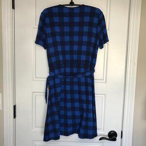 Draper James Faux Wrap Dress Women's Size Small Buffalo Plaid Nassau Navy Rayon