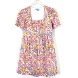 Draper James Fit And Flare Floral Print Mini 100% Linen Dress Women's Size 6