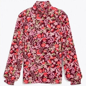 Draper James Floral Flowering Viney Knit Turtleneck Balloon Sleeve Blouse(XXL)