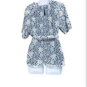 Draper James Floral Lace Overlay Tie Waist Top