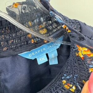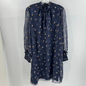 Draper James Floral Midi Dress Sheer Chiffon Swiss Dot Feminine Mock Neck Shift