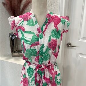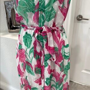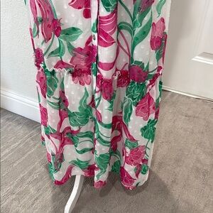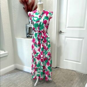 Draper James Floral Print Pink Green Maxi Tie Waist Dress XL