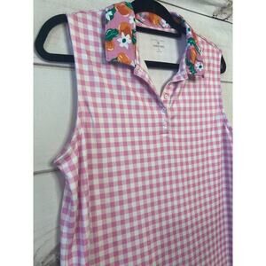 Draper James For Land's End Size LG Sleeveless Polo Pink White Check Print EUC