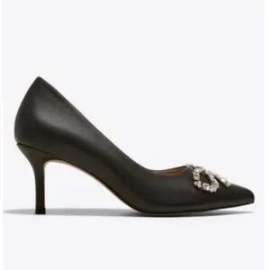 NIB these beautiful Draper James Ginny Black Leather with Rhinestone Bows, Size 7.5, can be yours in just a click or two. The pair has never been worn - one shoe has been tried on, so these are as new as you can get.The rhinestone bow is classic and is stunning IRL. Footbed includes Memory sock padding which keeps your feet comfy. Wear them out with friends while wearing your favorite denims, or pair them with a cocktail or special occasion dress for a holiday party or special event.