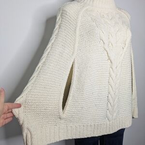 Draper James Grace & Charm off white cable knit poncho sweater XS/S. Viscose, nylon, merino wool, alpaca blend. Has slits to reach jean/pant pockets. Good condition.