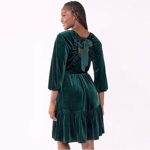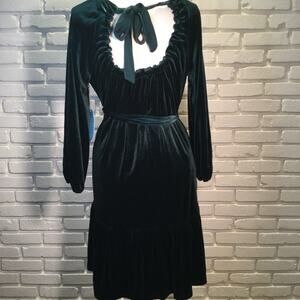 Draper James Green Velvet Bow Back Long Sleeve Dress L