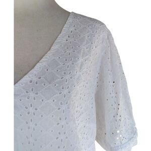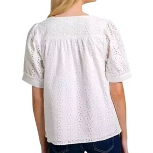 Draper James Heidi Puff Sleeve White Eyelet V Neck Blouse Size XL