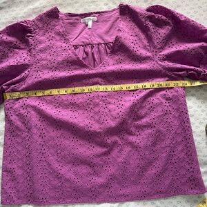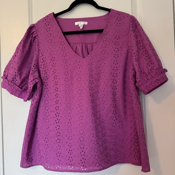 Draper James Heidi Purple Eyelet Puff Sleeve V Neck XL Top