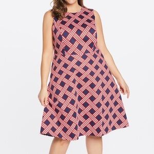 Draper James Lattice Midi Love Circle Dress Sleeveless Womens Size 16 Navy Red