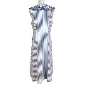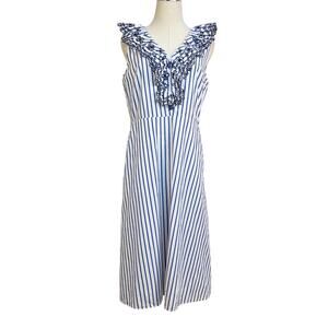 Draper James Lattice Stripe Ruffle Eyelet Dress White Blue