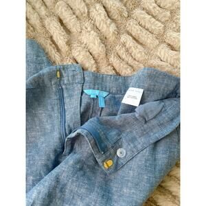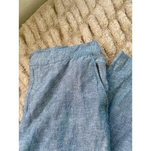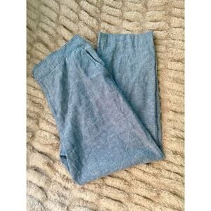 Draper James Linen Pants Size 10 Cropped Straight Leg Pull On Chambray Blue