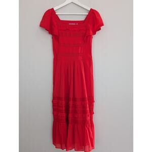 Draper James Lipstick Red Tie-Waist Dress Size Small Fit & Flare Southern Style