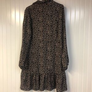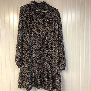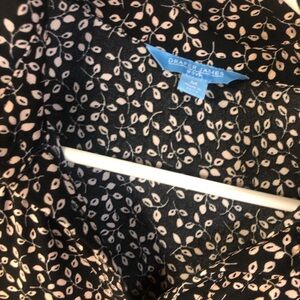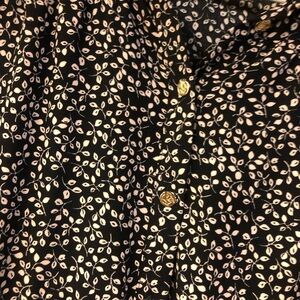 Draper James Long Sleeve Button Down Dress Black Floral Medium Tie Waist