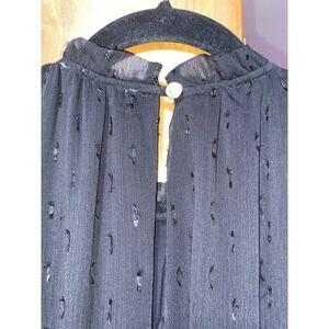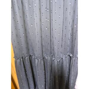 This is a black tiered maxi dress with silver speckles by Draper James. It is sleeveless with a ruffled neckline and a smocked waist. It is lined & this is Size small