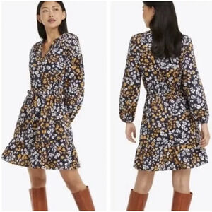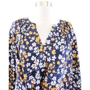 Draper James Lucinda Fall Field Floral Drawstring Waist Popover Dress Sz L Navy