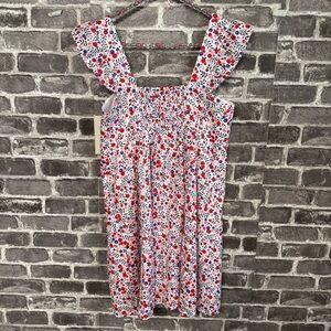 Draper James Maddie Babydoll Dress in Berry Print white red floral mini