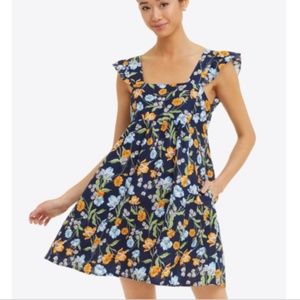 Draper James Maddie Babydoll Navy Blue Spring Bloom Mini Dress 3X