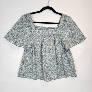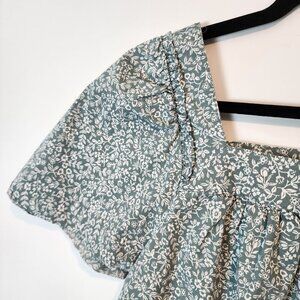 Draper James Maren Top Square Neck Sage Green Floral Pleated Cotton Stretch sz S