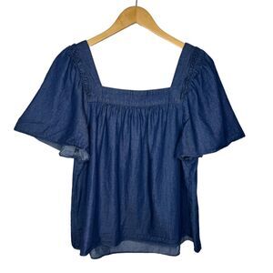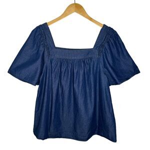 Draper James Maren Top chambray puff sleeve size small