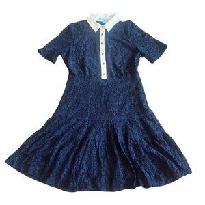 Gorgeous navy lace dress with white collar