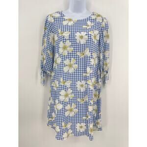 Draper James NEW Dress Women's 2 Exclusive Scad Blue Gingham Floral Shift Mini