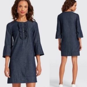 Draper James NWT Chambray Ruffle Shift Dress Dark Wash Blue Denim Women's 12