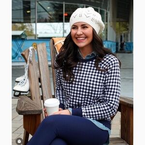 Draper James Natalie Sweatshirt Top in Blue Navy Gingham Small