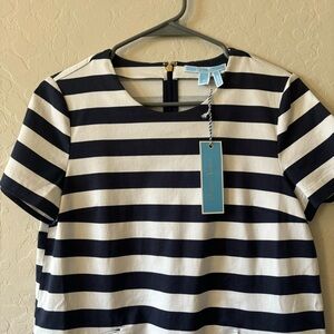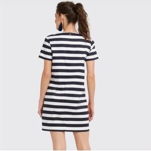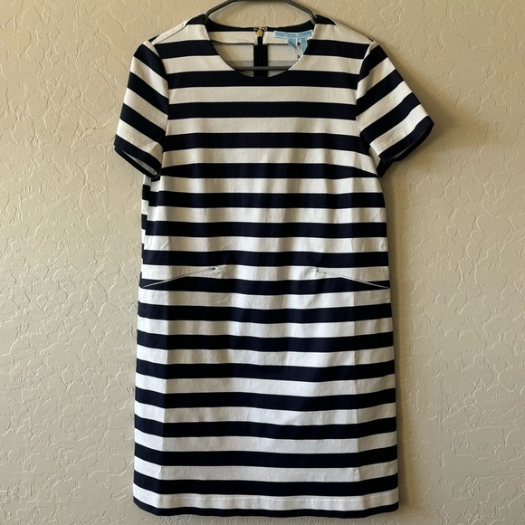 Draper James Navy Blue Striped Nautical Shift Dress Size 6 Preppy Classic Cotton