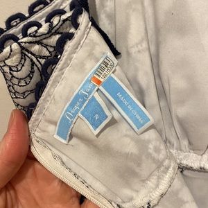 Draper James Navy Blue White Floral Lace Spaghetti Strap Tea Length Dress