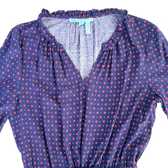 Draper James Navy Floral Polka Dot Ruffle Hem Dress Women’s Medium Retail $125