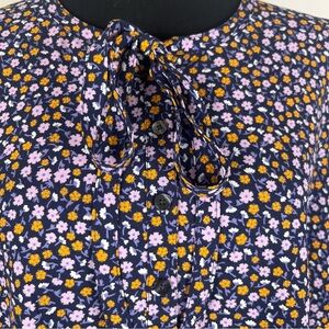 Draper James Navy Floral Tie Neck Dress Size 1X