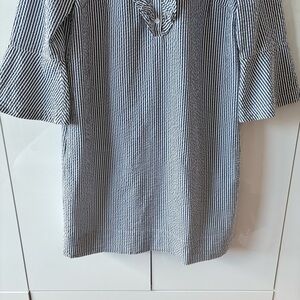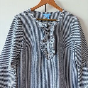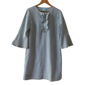 New with tags Draper James Navy and White Stripe Seersucker Ruffle Shift Dress