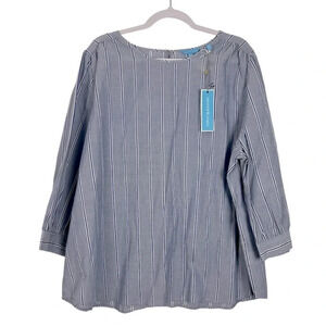 Draper James New Women’s 20X Striped 3/4 Puff Sleeve Curved Hem Cotton Top