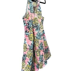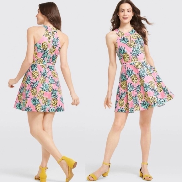 Draper James Pineapple Halter Dress Keyhole Women's Size 10 Sleeveless Mini Pink
