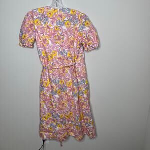 Draper James Pink Floral Linen Wrap Dress Women’s Size 6 Puff Sleeve Midi