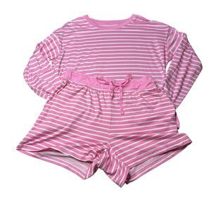 Draper James Pink Stripe Long Sleeve Shorts Lounge PJ Set Size Medium Womens