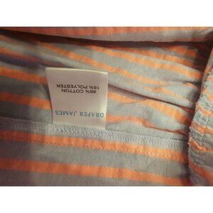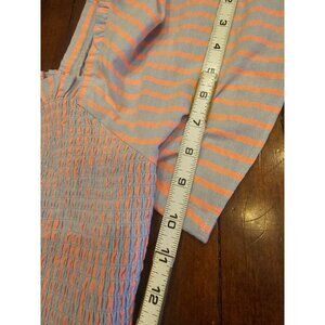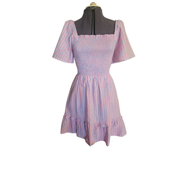 Draper James Pinstripe Fit & Flare Dress Puff Sleeve Ruffle Hem Blue & Pink Knee