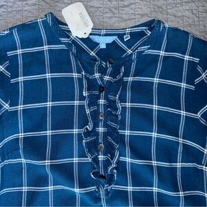 Size 4 - Dark Blue & White Plaid - Long sleeve - Quarter button up front