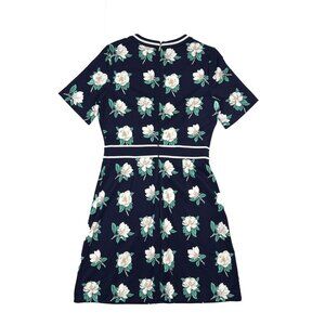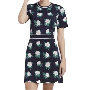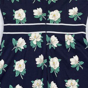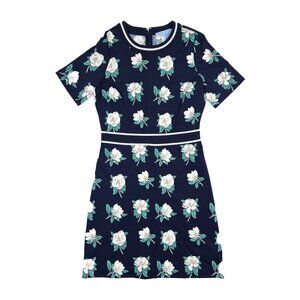Draper James Ponte Navy White Green Magnolia Floral A-Line Midi Size S - NWOT