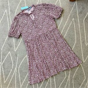 Very pretty purple patterned babydoll style dress from Draper James. It’s made of the softest knit stretch material and has pretty ruffle details at the neck and sleeves as well as a keyhole tie closure at the neckline. Brand new with tags. 23” pit to pit, 20” across waist, 39.5” length, 22.5” waist to hem, 12” sleeves.