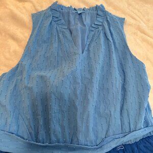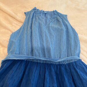 Draper James RSVP 100% Cotton Color Block Swiss Dot Blue Dress Size L