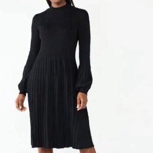 Draper James RSVP Black Pleated Dress Long Sleeve