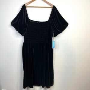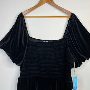 Draper James RSVP black stretch velvet pouf sleeve smocked dress, women’s plus size 3X. New with tags.