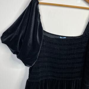 Draper James RSVP Black Velvet Puff Sleeve Smocked Skater Dress Womens 3X New
