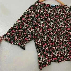 Draper James RSVP Floral Popover Crop Top 2X - Cottagecore, Rayon, Short Sleeve