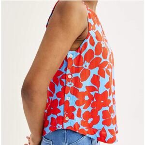 Draper James RSVP Floral Top Womens XXL Red Blue Sleeveless Button Side Tank