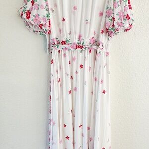 Draper James RSVP Floral Wrap Midi Dress Puff Sleeve White Pink Red M