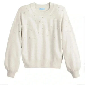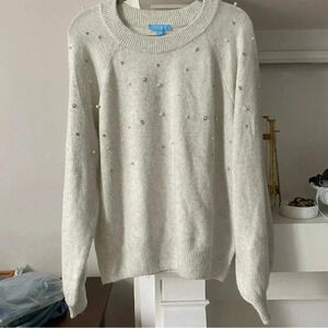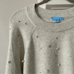 Draper James RSVP Long Sleeve Embellished Pearl and Rhinestone Sweater