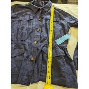 Draper James RSVP Navy Utility Military Jacket Linen Blend Pockets Large NWT