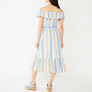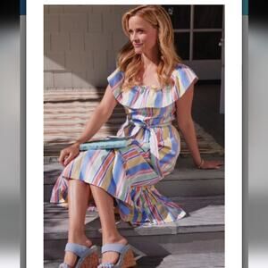 Draper James RSVP Off Shoulder Ruffle Sleeve Striped Midi Dress Size XXL